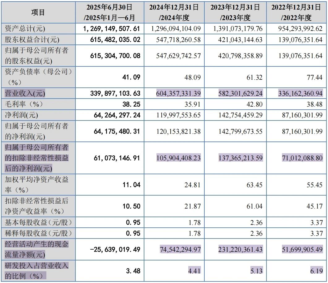 报告期内(2022年至2025年上半年),龙鑫智能的营业收入分别为3.36亿元、5.82亿元、6.04亿元、3.4亿元;净利润分别为8716.03万元、1.43亿元、1.2亿元、6426.43万元。