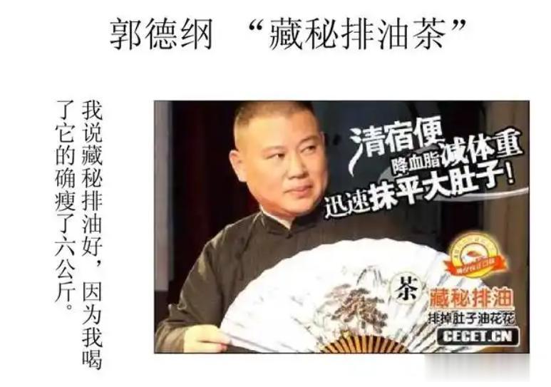 2007年央视3・15晚会直接点名曝光他代言的藏秘排油减肥茶,这款广告大肆吹嘘能快速排油、抹平大肚子。