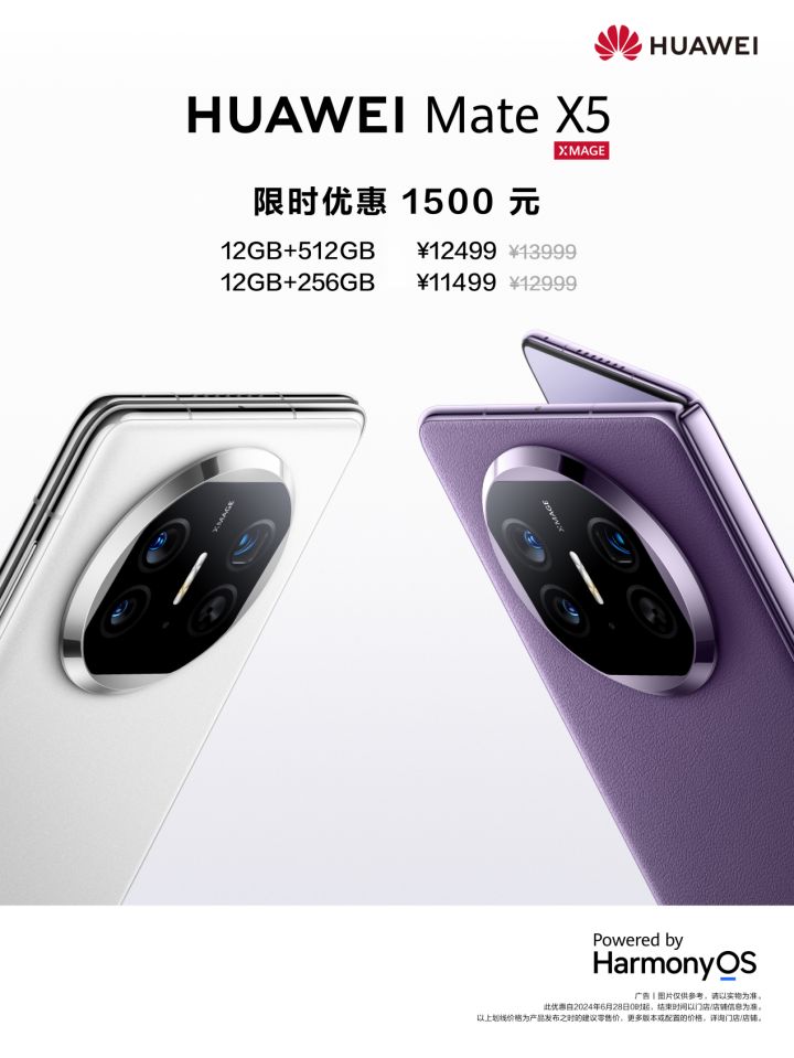 第一:目前Mate X5正在开展夏日礼遇限时优惠活动,6月28日至8月31日期间购买Mate X5 12GB+256GB、12GB+512GB就能享受1500元优惠,非常划算,早买早享受!