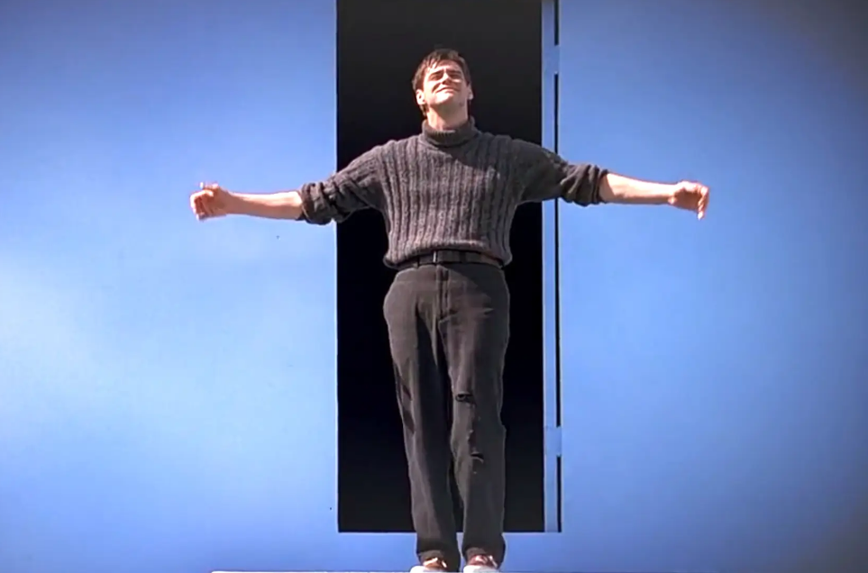 结尾处楚门推开那扇门的场景,成为了影史经典。门后是一片黑暗,象征着未知的真实世界,而门外的观众屏息以待,台上台下的人都在等待楚门的抉择。