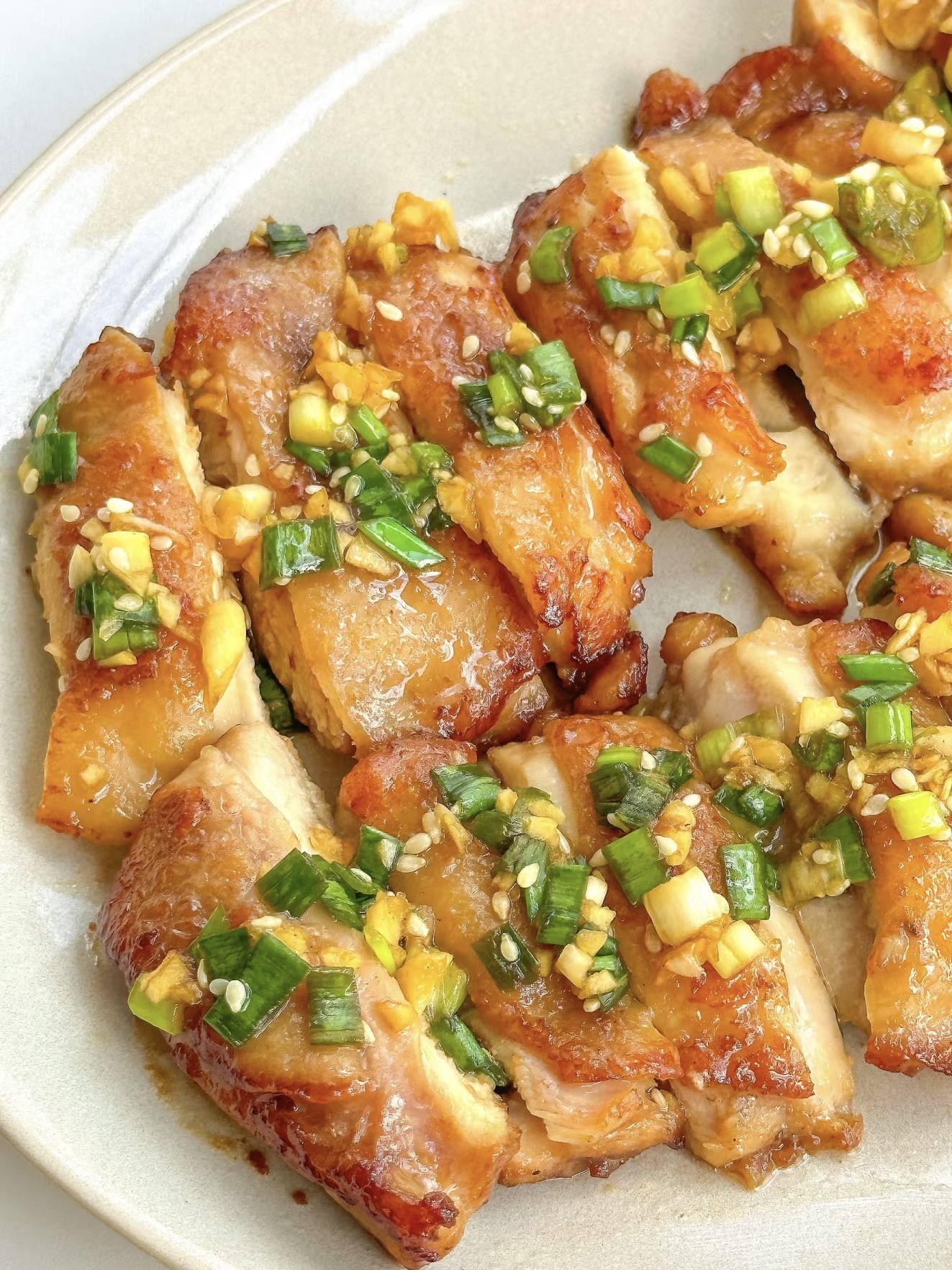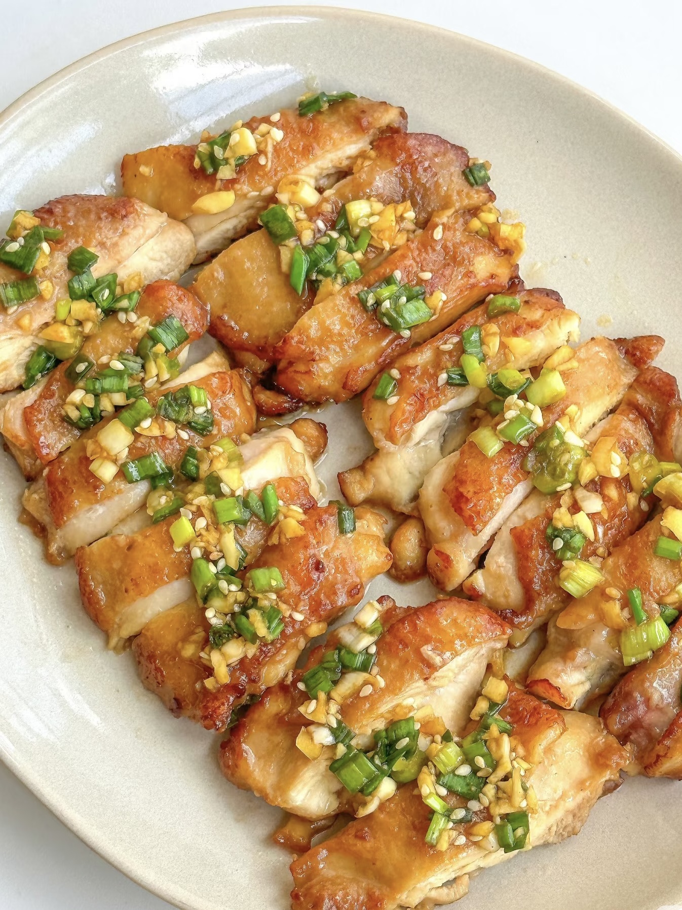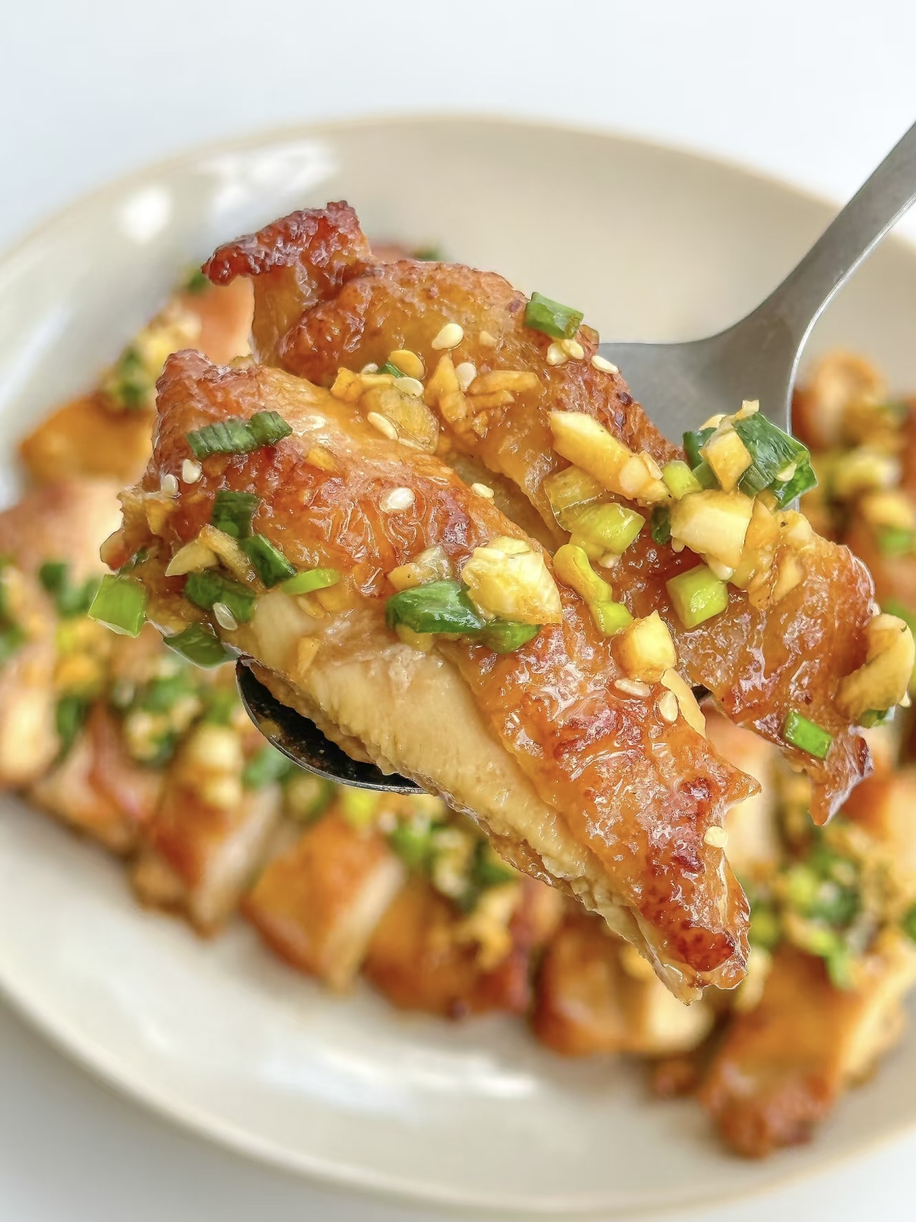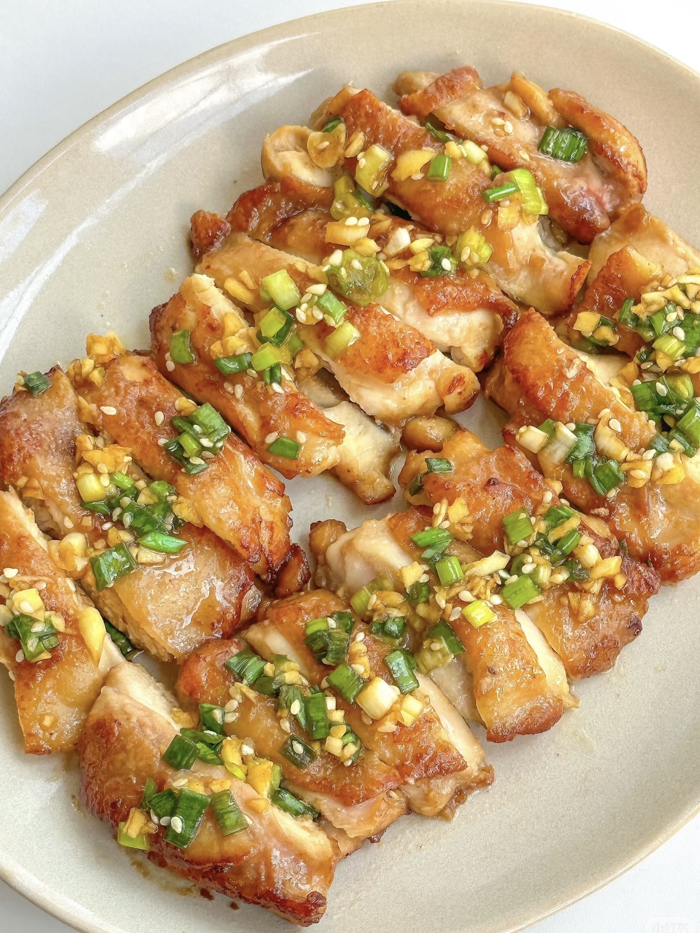 关火,不开盖,再焖两分钟,让肉汁“回流”到位。取出鸡腿,放案板“休息”五分钟——这是“锁汁关键”,切早了肉汁“跑路”,切晚了皮不脆。趁等待,锅里剩的葱油别浪费,倒一小勺生抽,呲啦一声,做成“葱油酱”,淋在米饭上,能秒变黯然销魂饭。五分钟后切块,刀斜45度,切出“小金砖”,断面粉嫩,肉汁“滋”地冒出来,皮面焦脆,像炸鸡却更低脂,葱丝贴皮,绿得冒光,颜值直接冲顶。