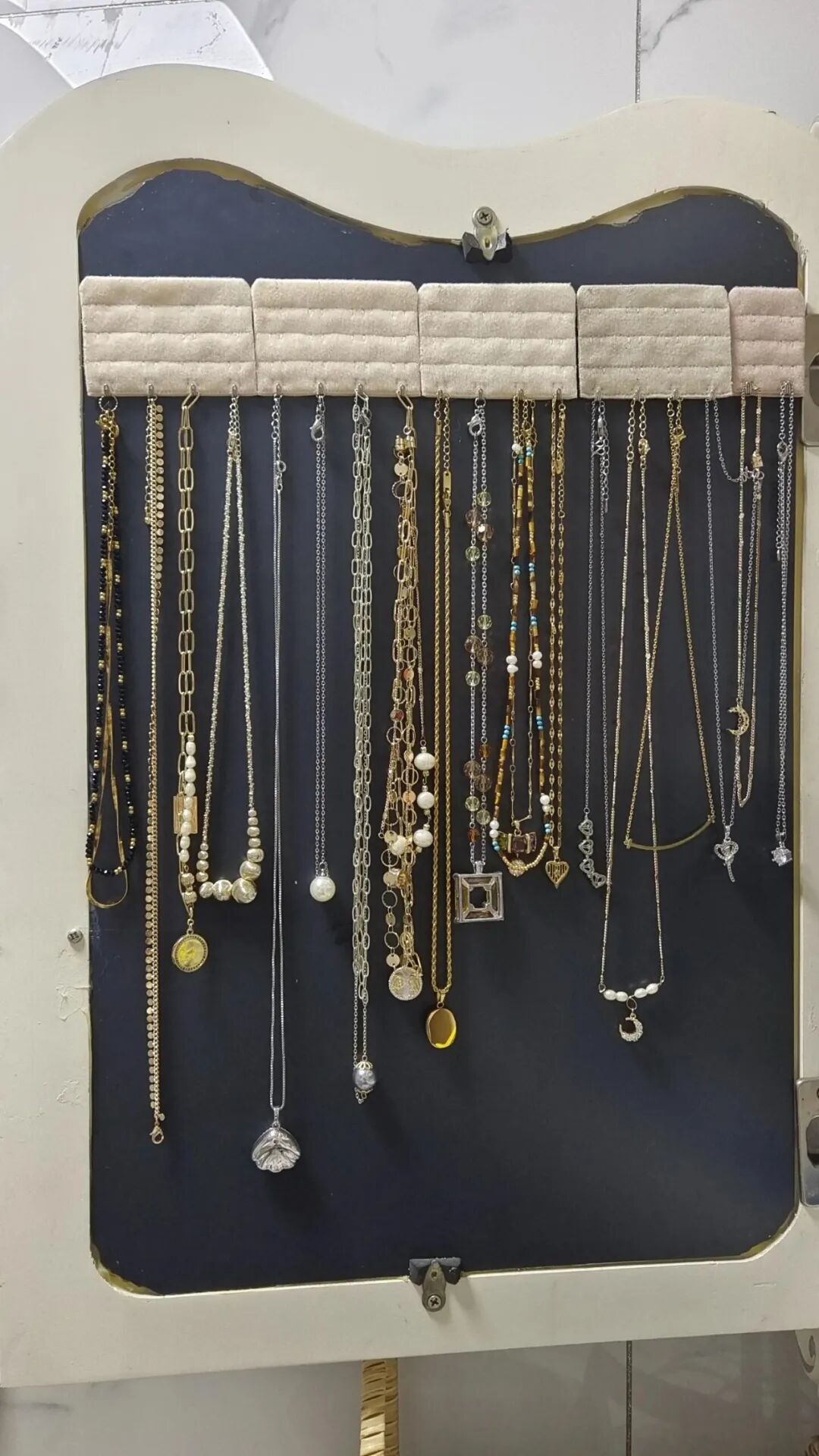 以前我买过专门的首饰盒,几百块一个,结果放不了几条就满了。