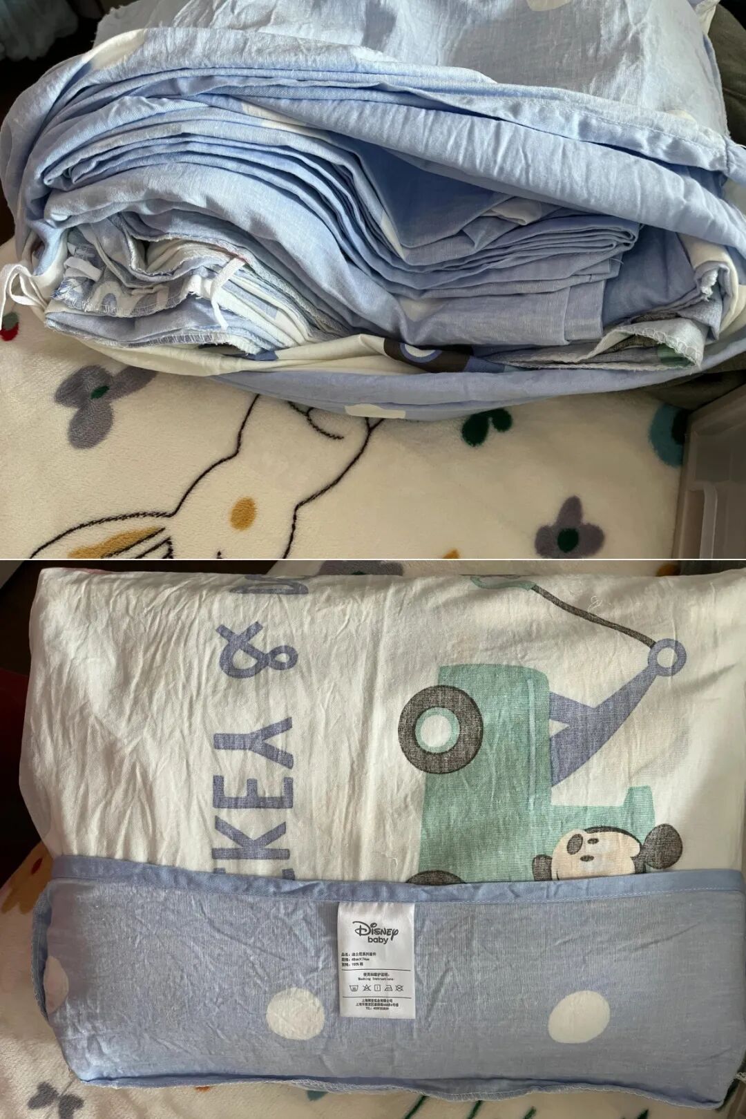 这样一套四件套整整齐齐,找的时候直接拿一个枕套就行,不会弄乱其他的。