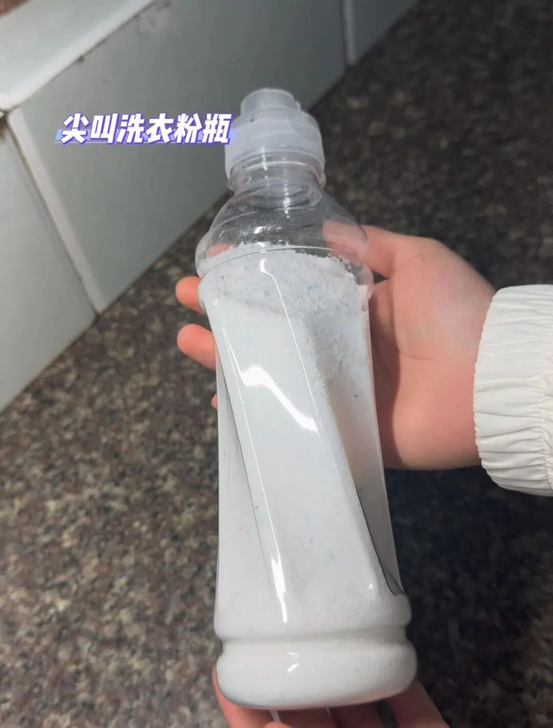 年轻人直接盯上了“尖叫”饮料瓶,找个尖叫瓶子,把洗衣粉灌进去!
