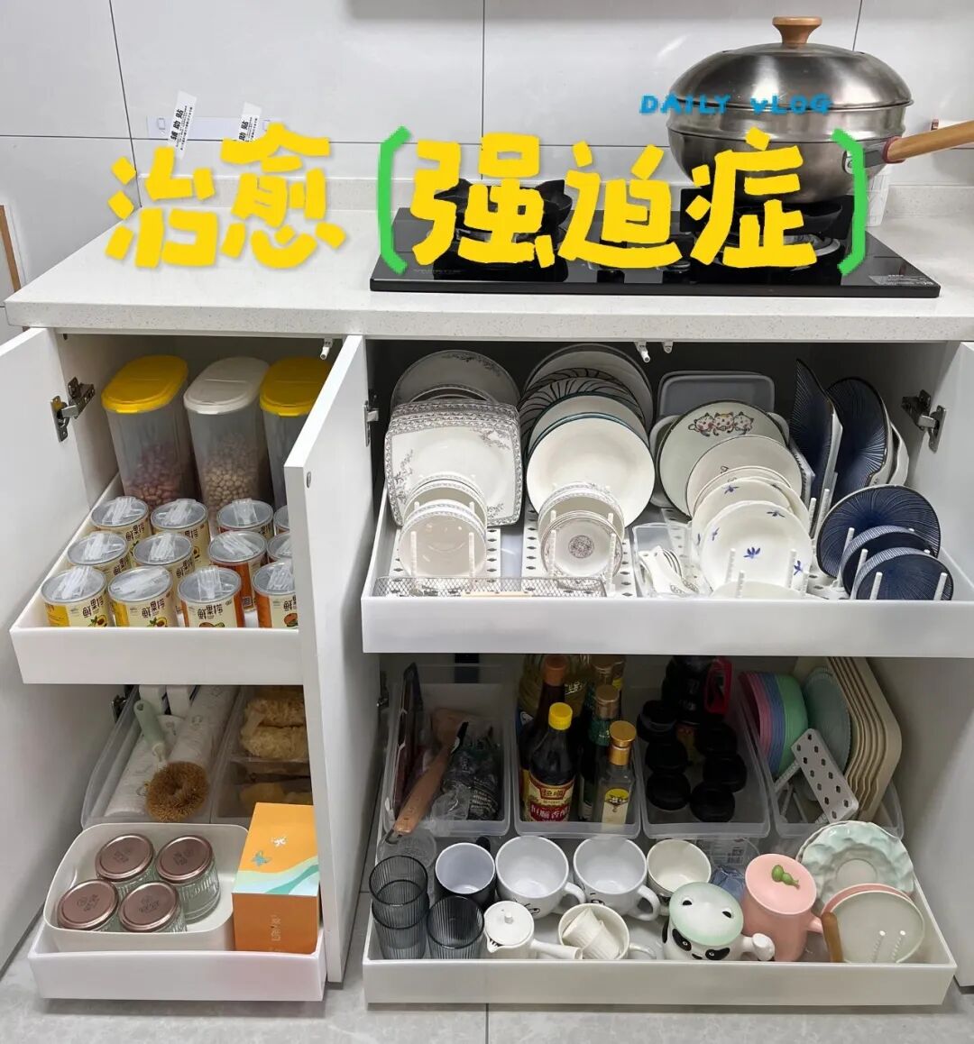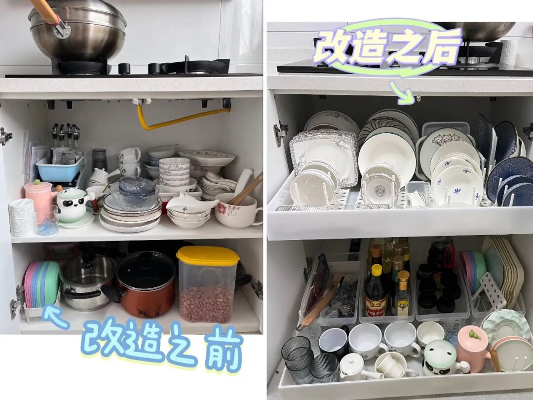 配上滑轨装进橱柜,抽拉顺滑,空间分层利用到极致。