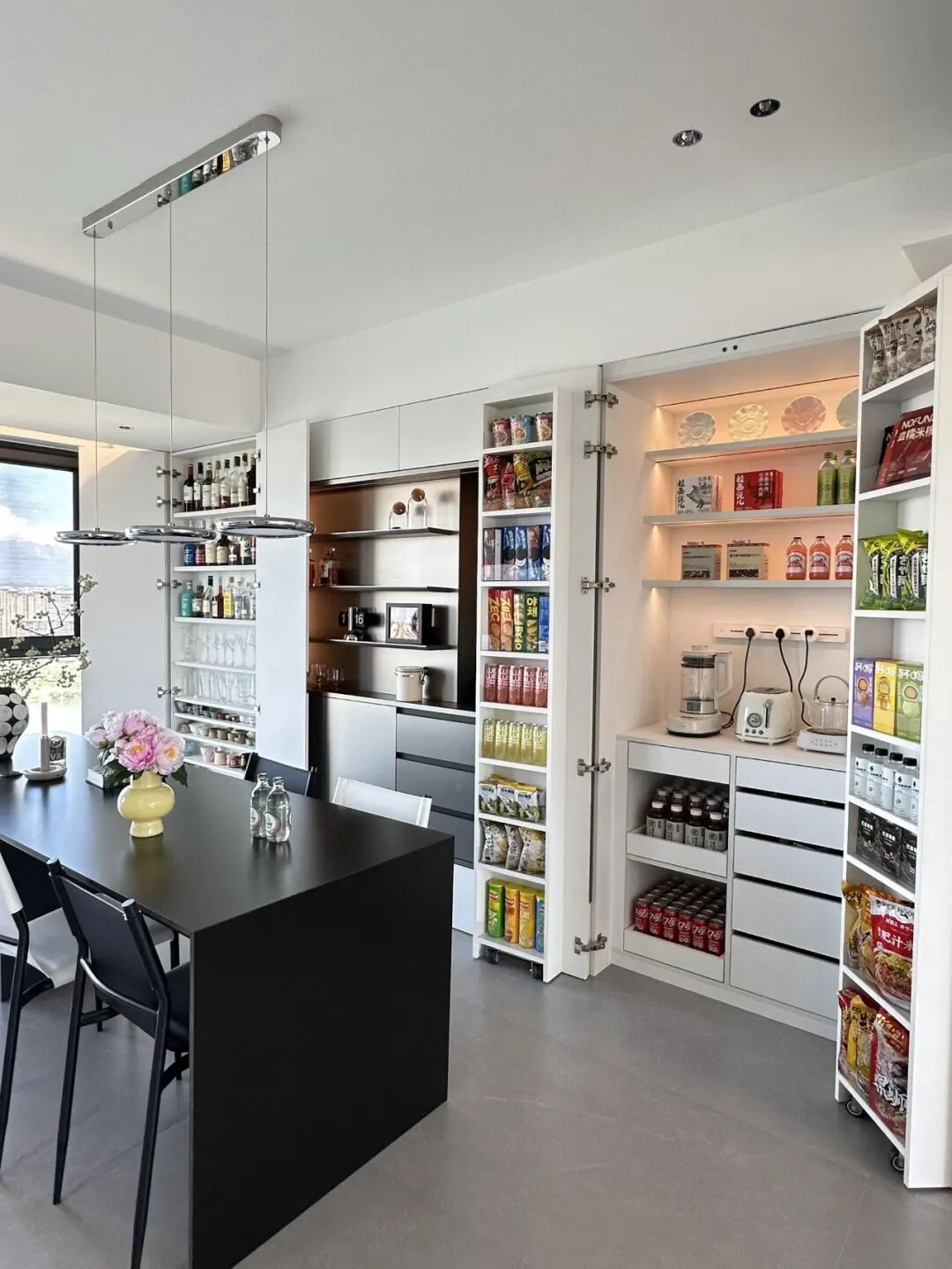 厨房蔬菜收纳也是个大问题,装修时没考虑到的话,菜买回家要么扔在地上,要么堆在台面上,又乱又不卫生。
