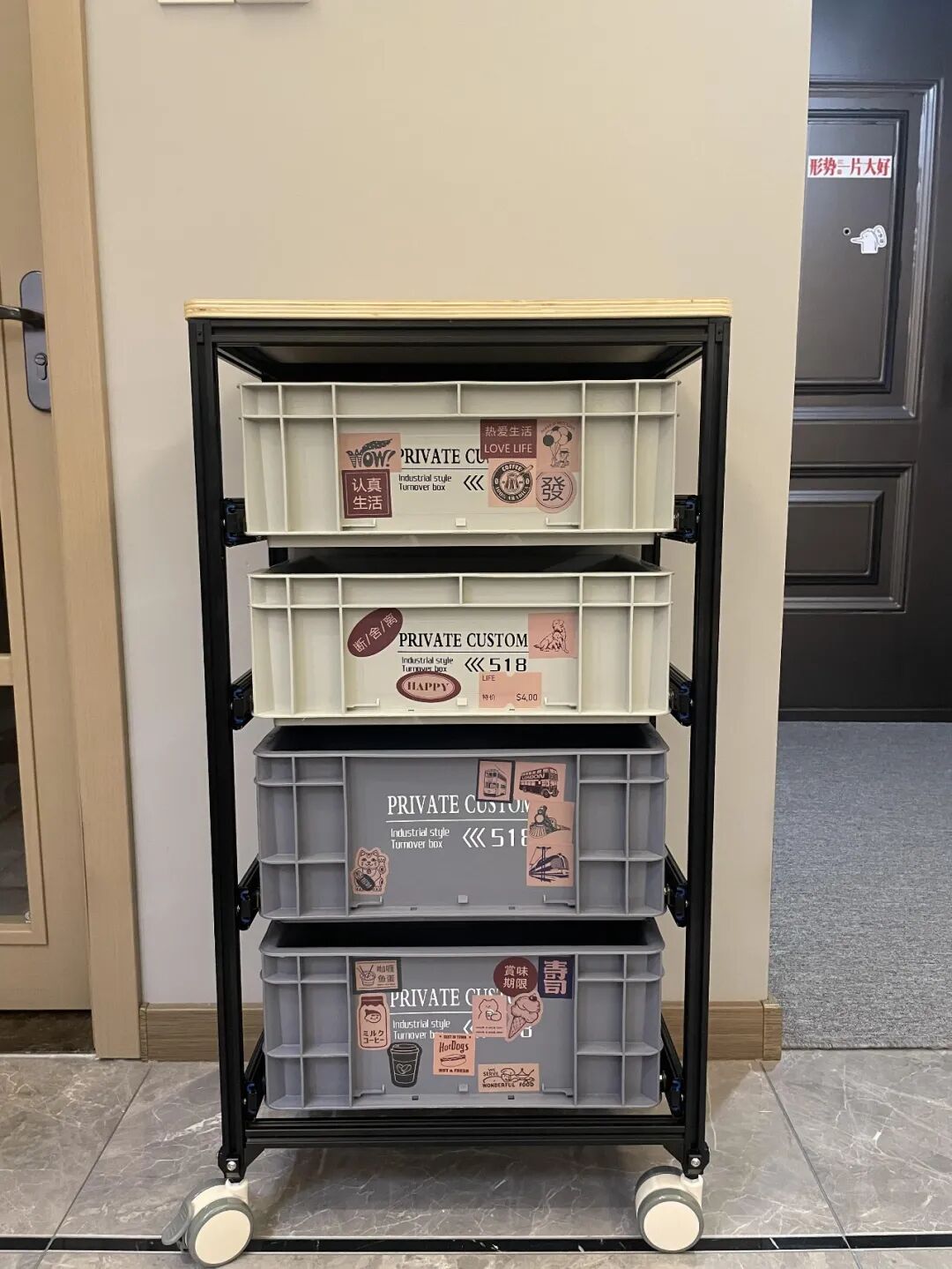 年轻人的办法是,去水果摊找几个不用的塑料筐,买四根角钢,螺丝或扎带固定一下,还可以加4个万向轮,成本10来块钱,一个蔬菜置物架就做好了。