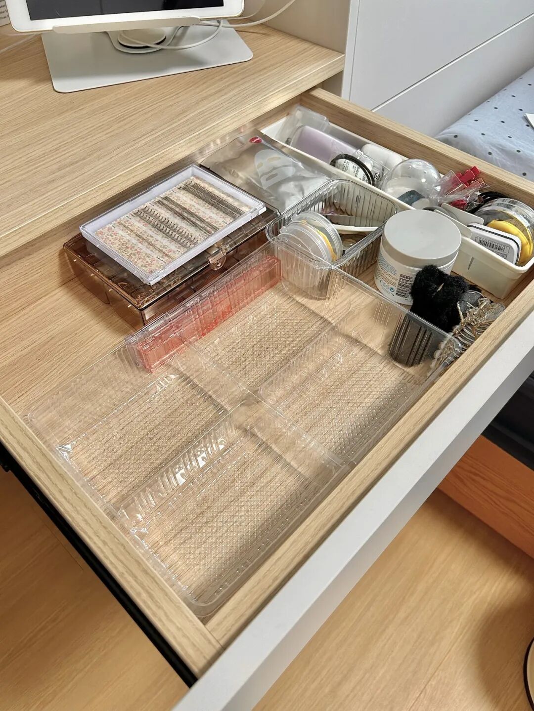 很多人会买抽屉分隔板,几十块一套,还得量尺寸,买错了就白搭。