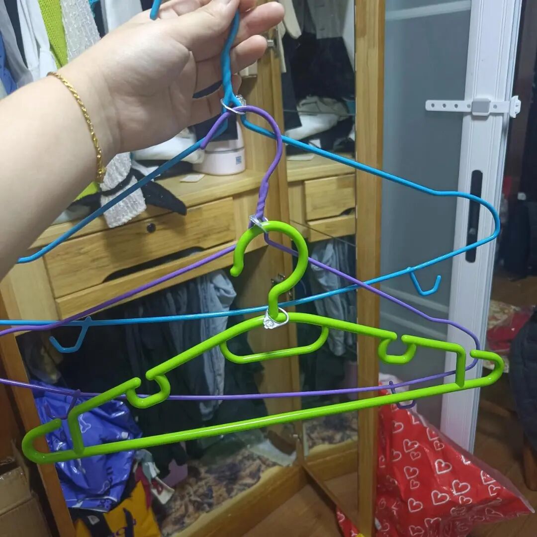 年轻人早就看不下去了,他们从易拉罐上抠下那个小拉环,串在衣架上,一个衣架瞬间能挂三四件衣服。