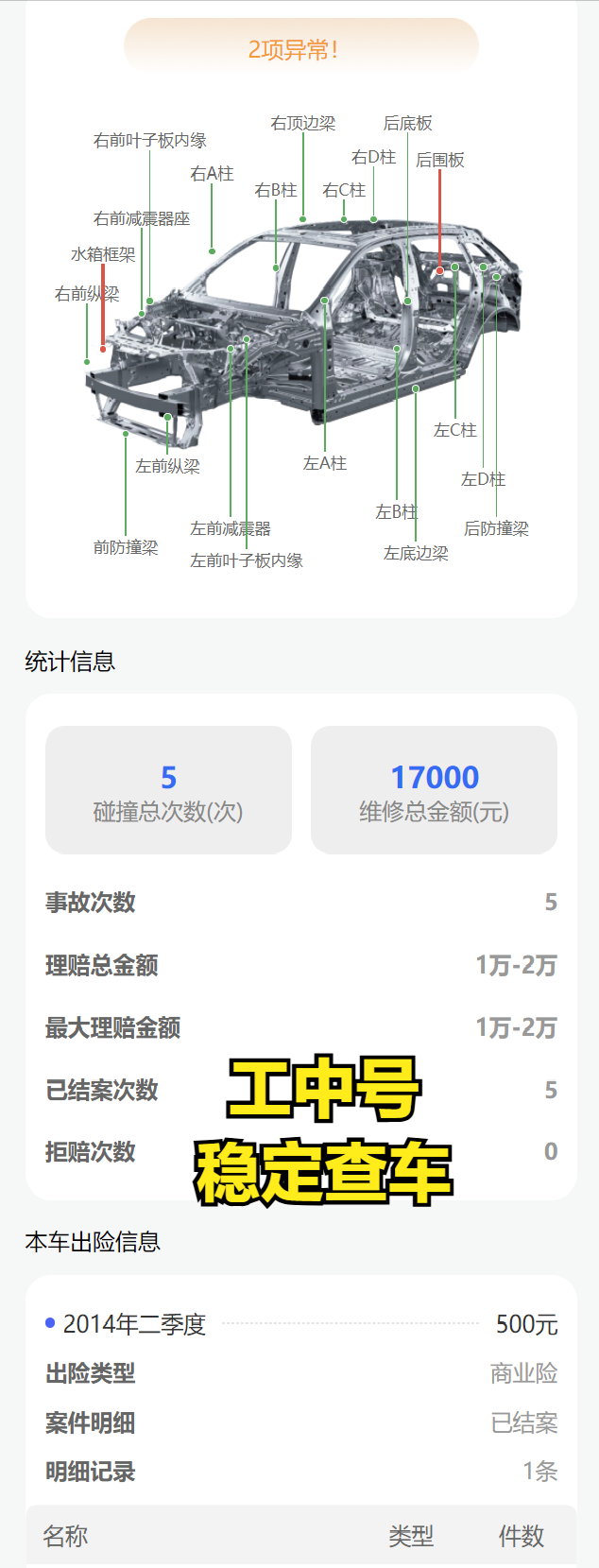 做好车辆出险记录原因查询,比单纯查出险次数更重要!通过“稳定查车”的报告,重点关注这些原因关键词: