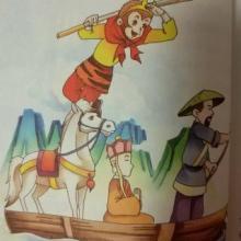 唐僧在鹰愁涧喜得龙马,正为过陡涧发愁时,忽然从上游来了一个渔翁,撑着一个枯木做的筏子,把唐僧顺利渡到了对岸。