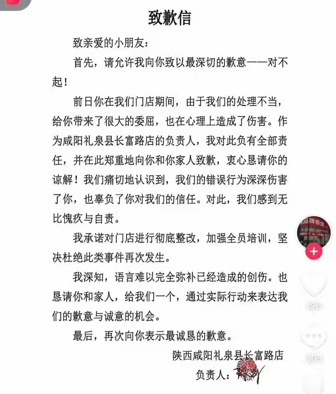 04 关店、道歉、整改,店家付出了沉重代价事情发生后,涉事的“好想来”门店发布了致歉信,承认处理不当,给孩子们带来了巨大伤害。
