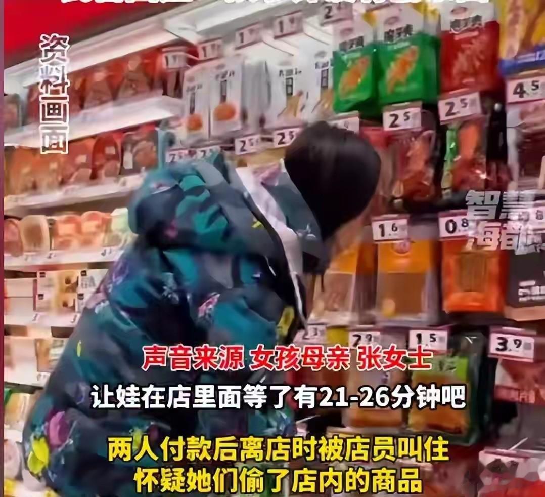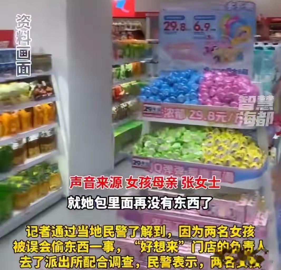 可当家长查看监控时,画面只显示其中一个女孩摸了摸货架商品,又摸了摸自己开着的背包,并没有任何把东西放进包里的动作。