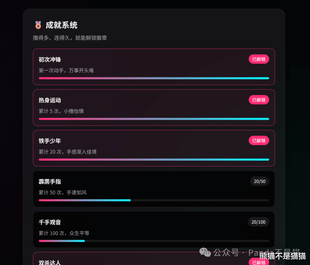 部署归部署,熊猫最后还是要温馨提示一句:小撸怡情,大撸伤身,强撸灰飞烟灭。榜单虽好,可不要贪杯哦!建议大家把这个项目当成一个朋友间互相调侃、测试手速(或者测试鼠标耐久度)的小玩具就好,千万别为了刷榜把身体搞垮了 😂。