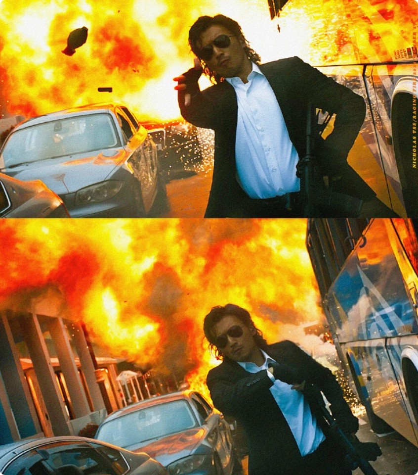 早年间拍《男儿本色》,有一场从电车顶滚落再被大巴车狠狠撞飞的戏,光是听描述就让人捏一把汗,剧组早就准备好了替身,可谢霆锋却摆摆手直接拒绝。