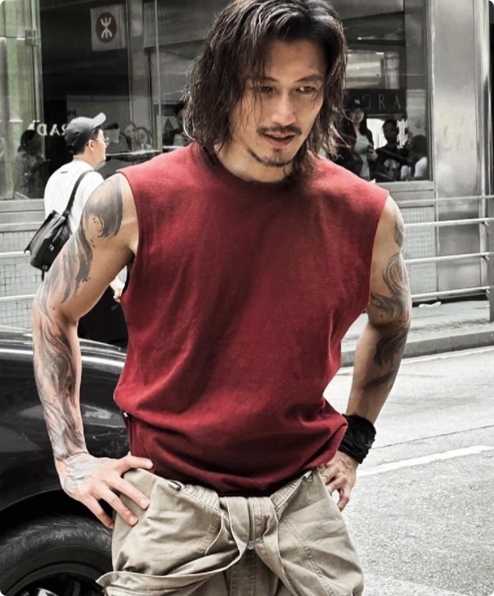 可在《镖人》里,他直接撕掉了帅哥的标签,活成了大漠里一身匪气的糙汉,黝黑的皮肤爬满风沙的痕迹,满脸络腮胡遮去了往日的棱角,一身粗布劲装裹着结实的肌肉,眼神里藏着狠劲与不羁,一眼看过去,没人会把这个人和舞台上唱着《因为爱所以爱》的偶像歌手联系在一起。