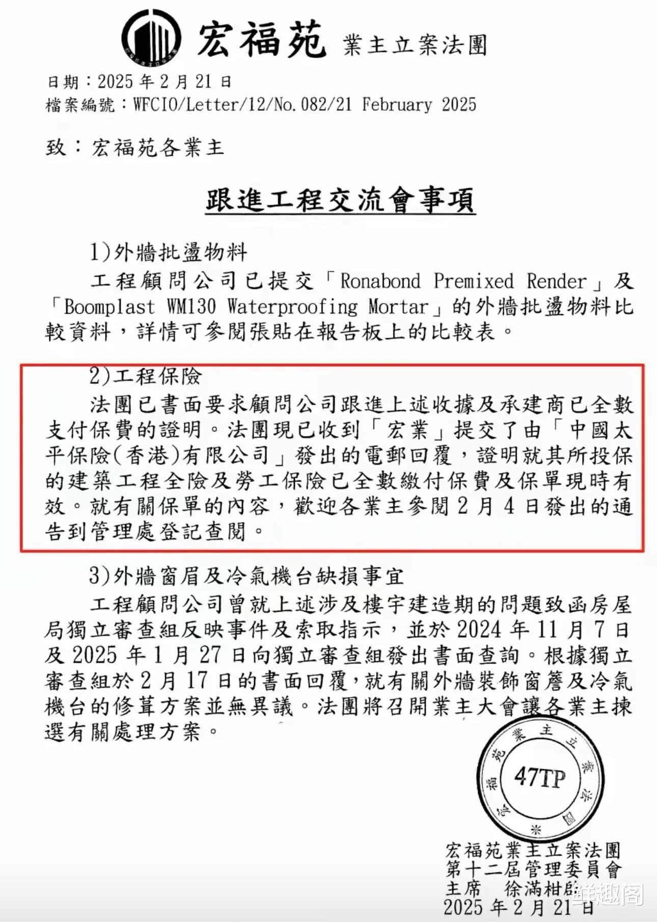 然而,旧法团已在2024年4月与宏业建筑签署工程合约,7月16日起搭建第一期座数的棚架,大维修工程却是照旧进行,计划到2026年3月至6月分批拆除棚架。而在维修的过程中,很多业主早就对安全问题提出了质疑。