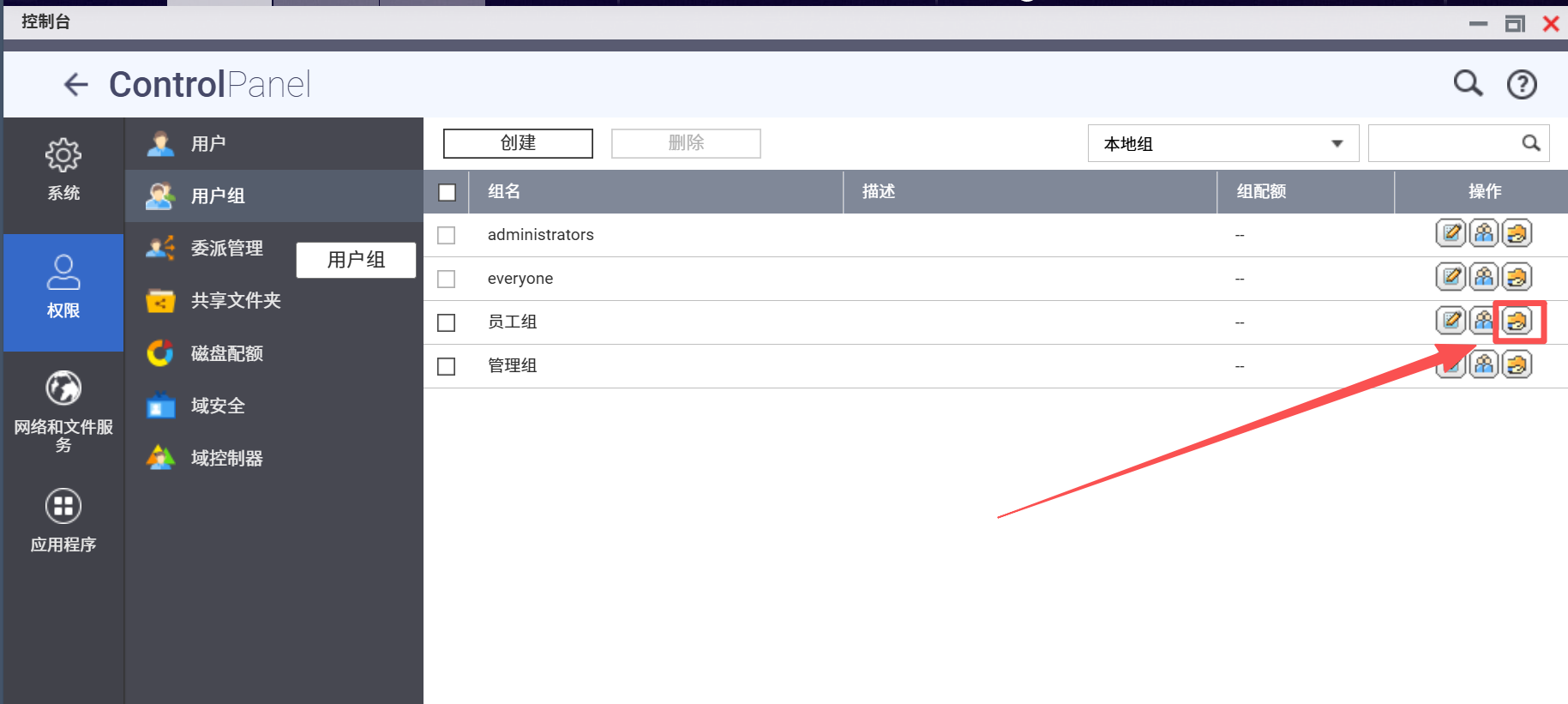 ▼账号是NAS对团队成员进行管理的最基础单位,通过控制台-权限中进行创建。