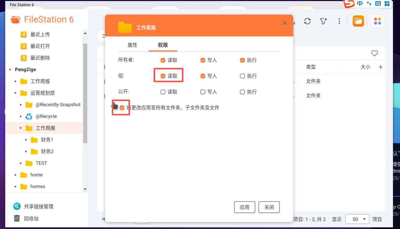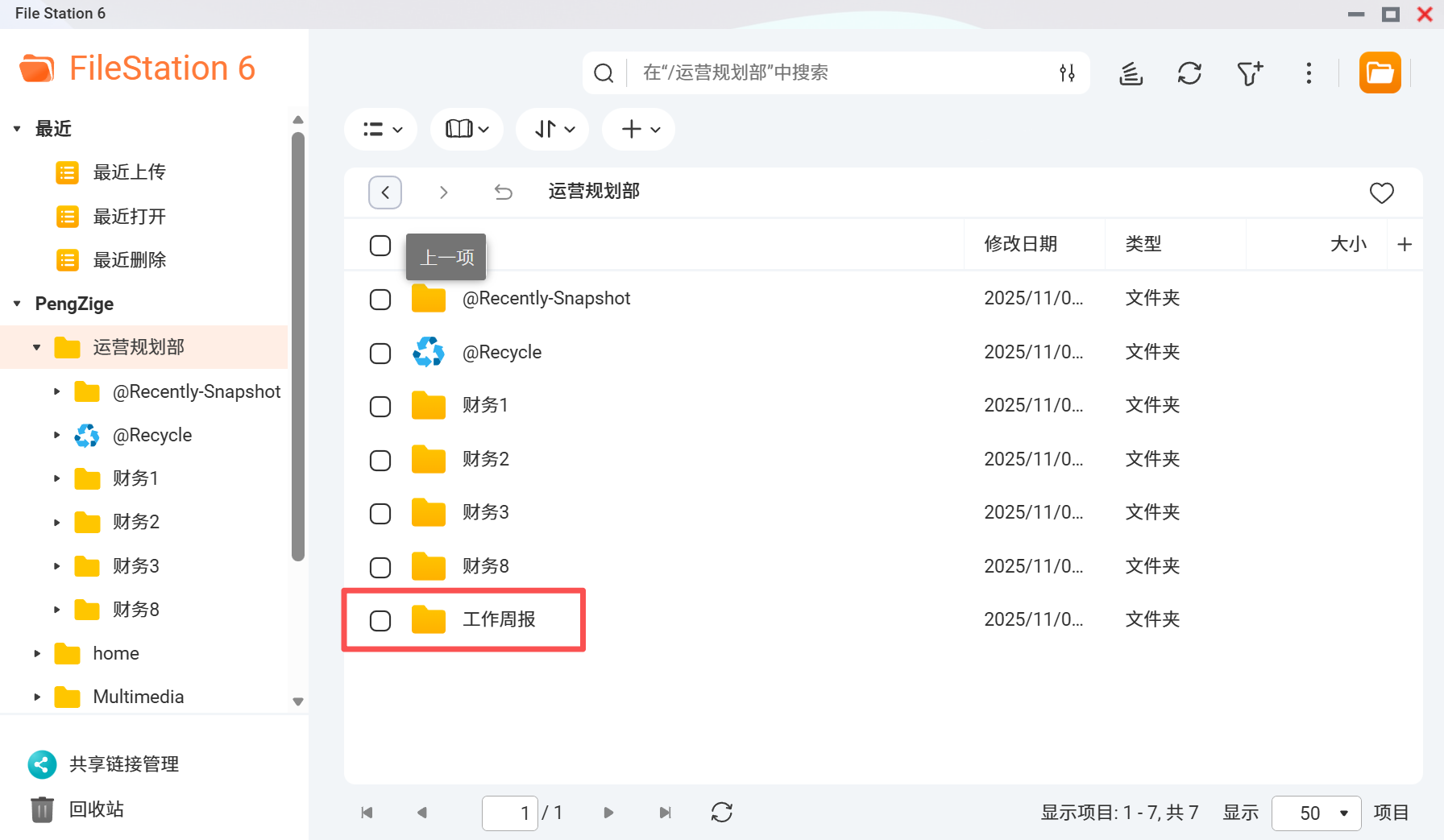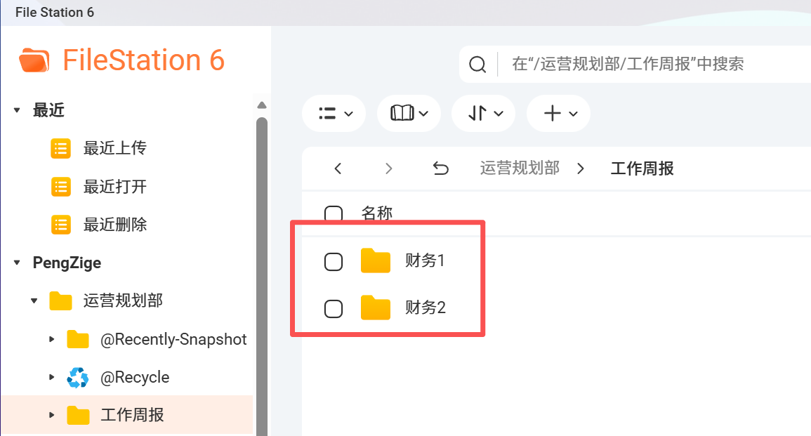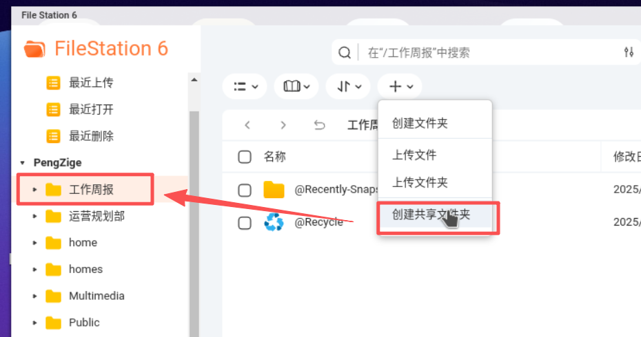 首先我们打开File Station 6,在部门共享文件夹中创建「工作汇报」文件夹。