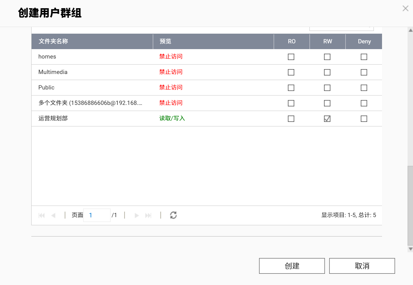 ▼下滑编辑共享文件夹权限,给到两个用户组我们刚刚创建的运营规划部文件夹权限,这时候所有团队成员都可以访问这个文件夹了。