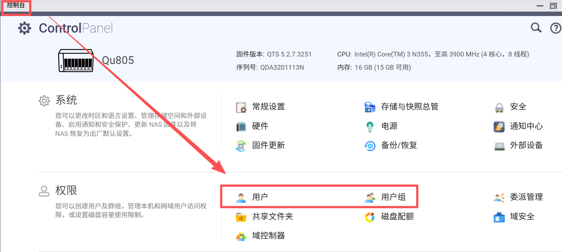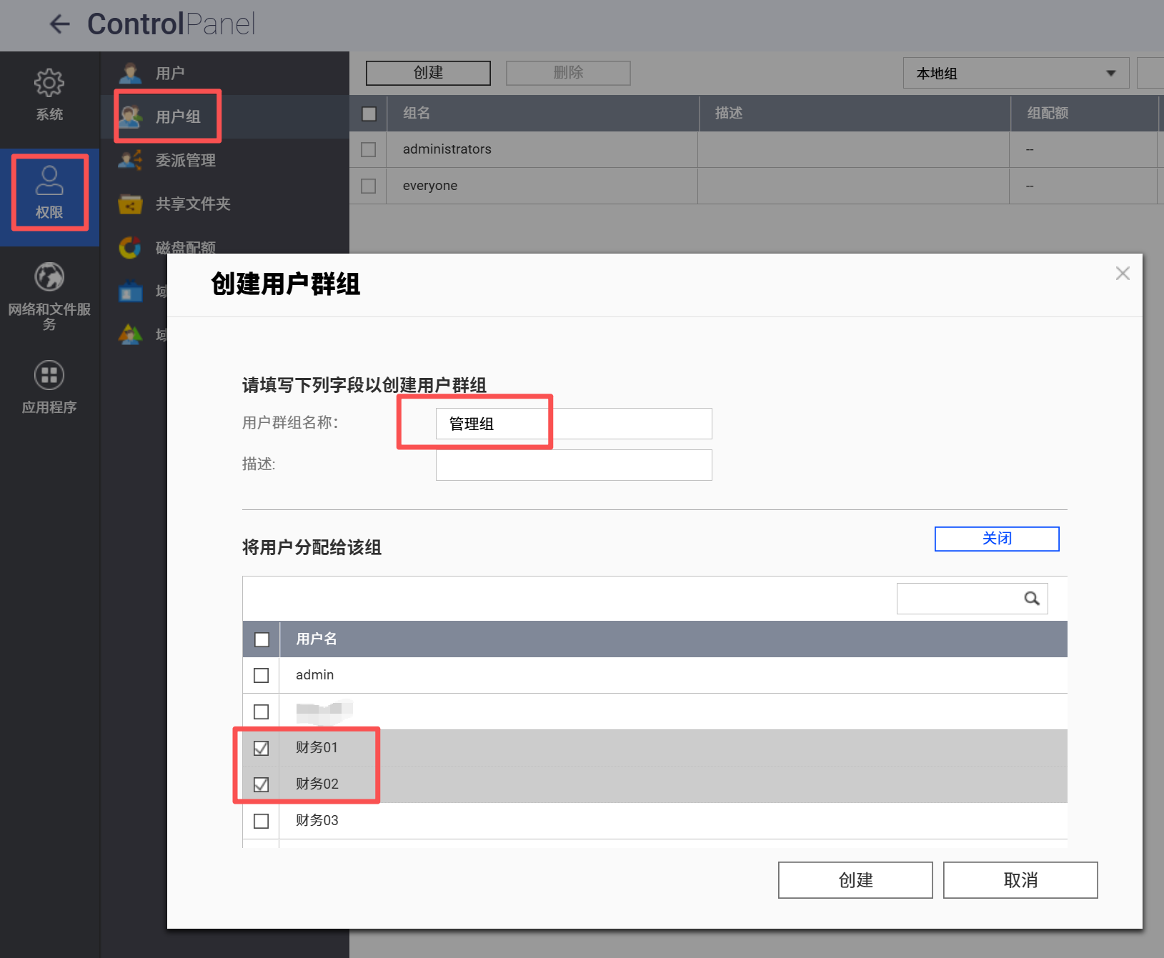 ▼威联通QTS支持使用中文创建账号,方便我们队成员进行管理。