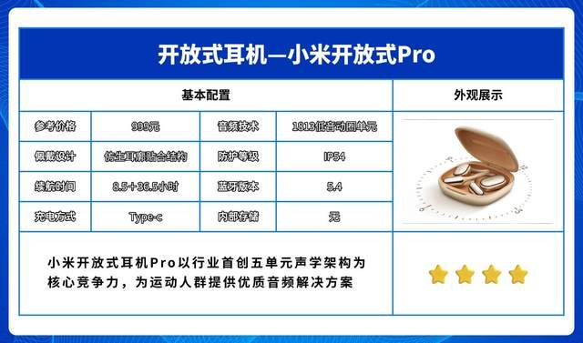 小米开放式耳机Pro以行业首创五单元声学架构为核心竞争力,为运动人群提供优质音频解决方案。