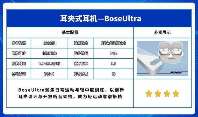 BoseUltra聚焦日常运动与轻中度训练,以创新耳夹设计与开放听音架构,成为轻运动靠谱搭档。
