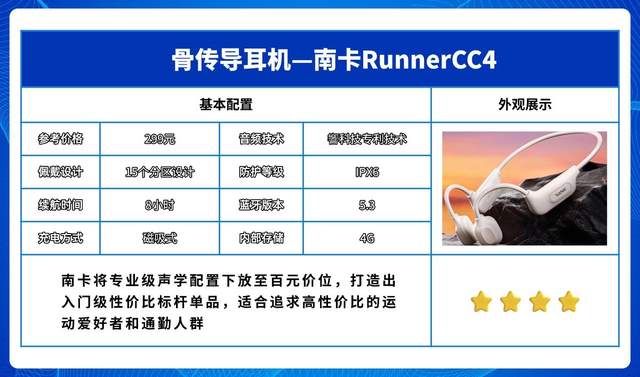凭借品牌口碑加持与越级配置优势,南卡Runner4在音质、防护、佩戴等维度全面发力,成为骨传导市场的领跑者。对于追求品质、耐用性与多场景适配的运动爱好者来说,这款旗舰机型堪称无可替代的硬核之选。