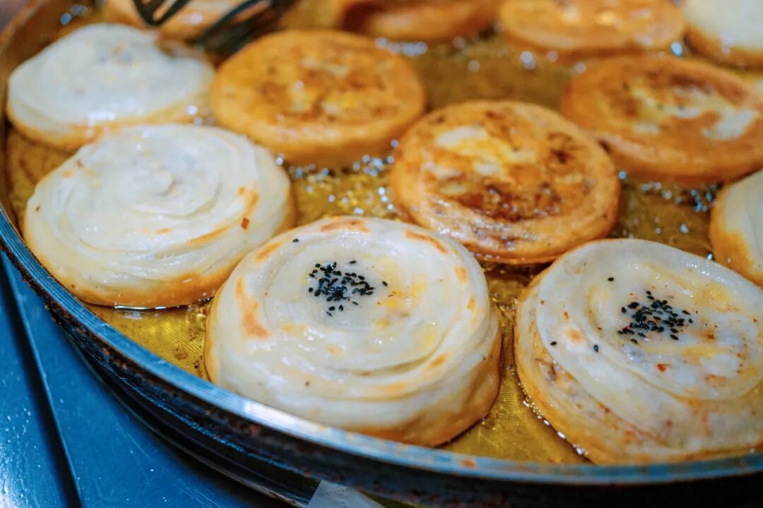 沙甸卖了11年的“神级”牛肉饼,无论去到哪个美食街,都是排长队的存在。手工制作,进口前要经过30多道工序。油锅里煎到两面金黄冒泡,香味能窜出十米开外。