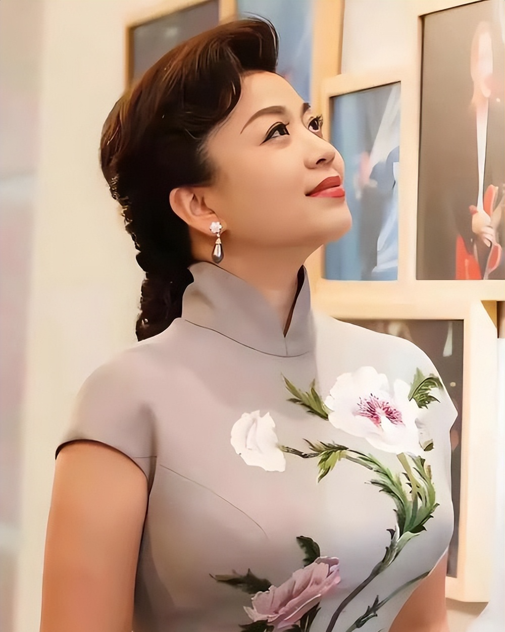 每次出场都是改良的鱼尾旗袍,搭配民族风格的耳饰,脸上永远带着温和的笑容。