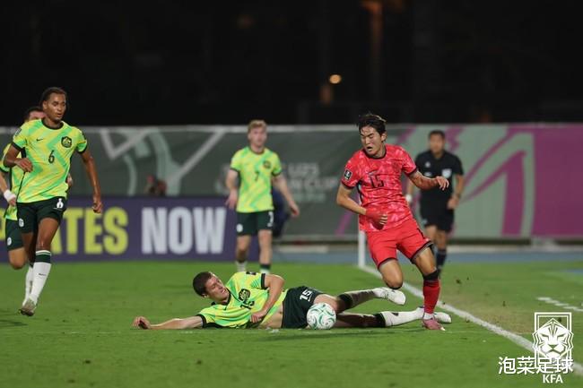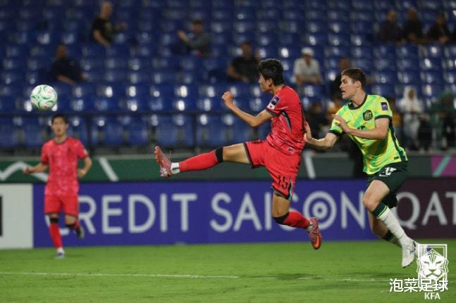 得分之后,韩国没有选择回撤,反而是继续高压,姜成真在连续射门偏出后,澳大利亚也寻得了一次机会,申敏河在后场被对手断球,对手趟入禁区被铲倒,主裁傅明开始判罚点球,但看过VAR后,发现澳大利亚球员在韩国球员铲球前已经跳起倒地,认定假摔取消了点球。这个球并未给韩国敲响警钟,因为下半场,几乎是同样的机会,申敏河再次失误,尽管回追的裴炫瑞尽力捅给门将洪成民,但还是被澳大利亚球员约万诺维奇抢先截球完成小角度破门,1-1!双方重回同一起跑线,李敏成构筑的三中卫防线再次失分,这也让他再度担忧起来。澳大利亚利用从申敏河脚下断球形成单刀,但这次射门被洪成民扑住,避免了被逆转。