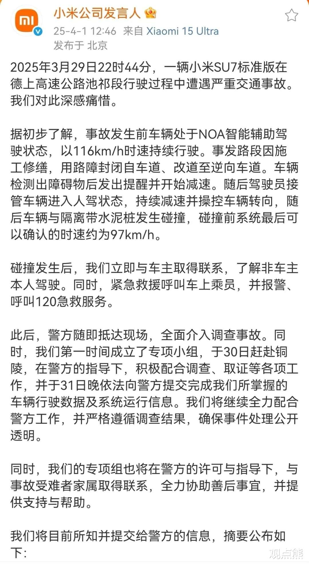 在内部,雷军强调要“在汽车安全的领域成为同档最安全的车”,要承担起大公司的领导者责任。面对质疑,小米也迅速暂停了有争议的OTA推送,并提出了补偿方案。