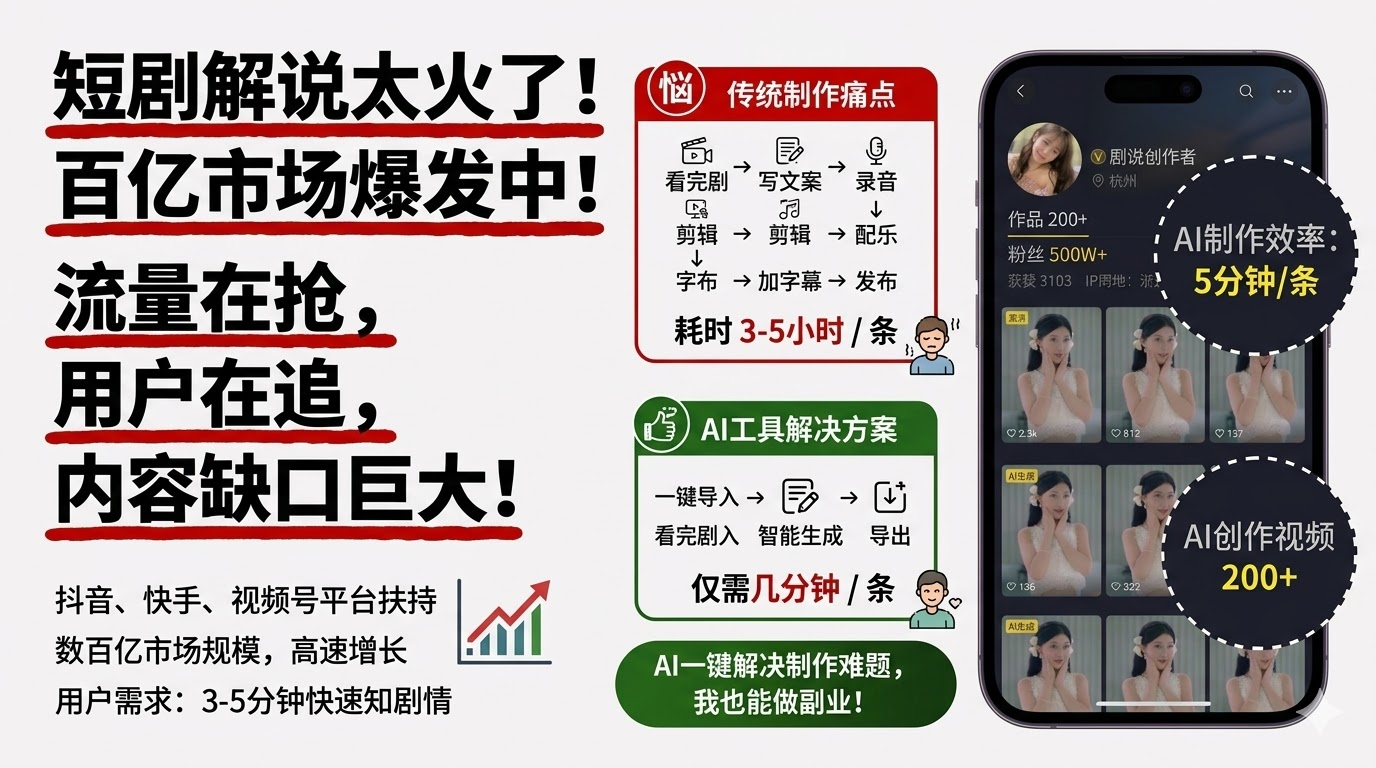 在聊具体工具之前,我想先说说为什么短剧解说这个赛道值得关注。