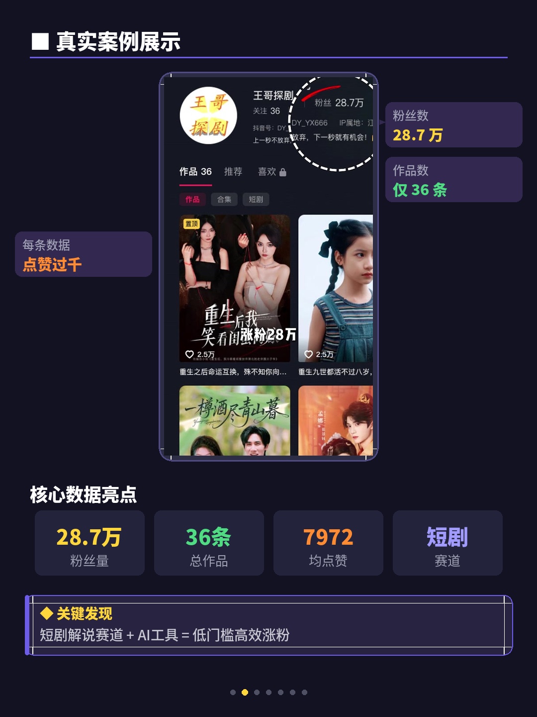 说实话,第一眼并没有太在意——毕竟短剧解说号满大街都是。但随手点进主页一看,我愣住了:总共才发了36条作品,粉丝已经到了28.7万。