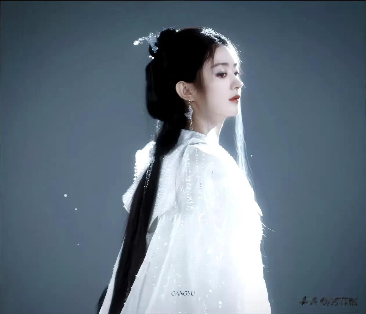 蓝色眼影、白色纱裙,这些于赵丽颖而言都是新鲜的尝试。