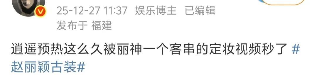 正如网友所说,《逍遥》预热了很久,不如赵丽颖的短暂亮相出圈。