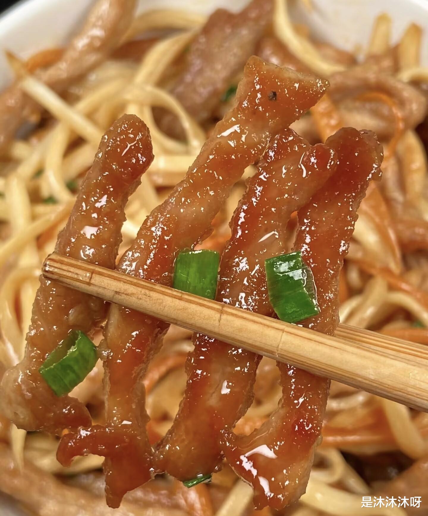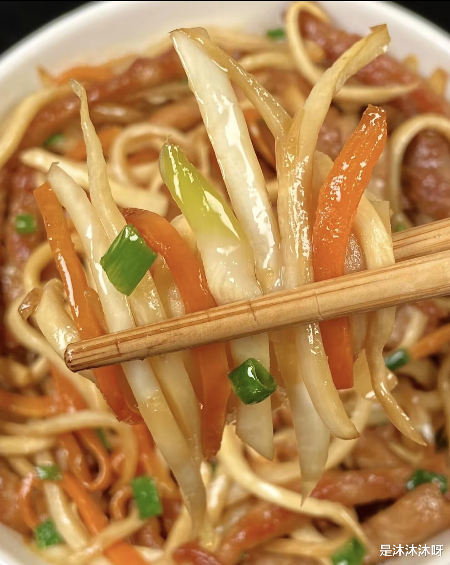 准备工作做好,锅烧热,倒入比平时炒菜稍微多一点点的油。油热后,先把腌制好的肉丝倒进去,快速滑散。看到肉丝变色,立刻盛出来备用。这样滑出来的肉丝,又嫩又滑,颜色也好看。