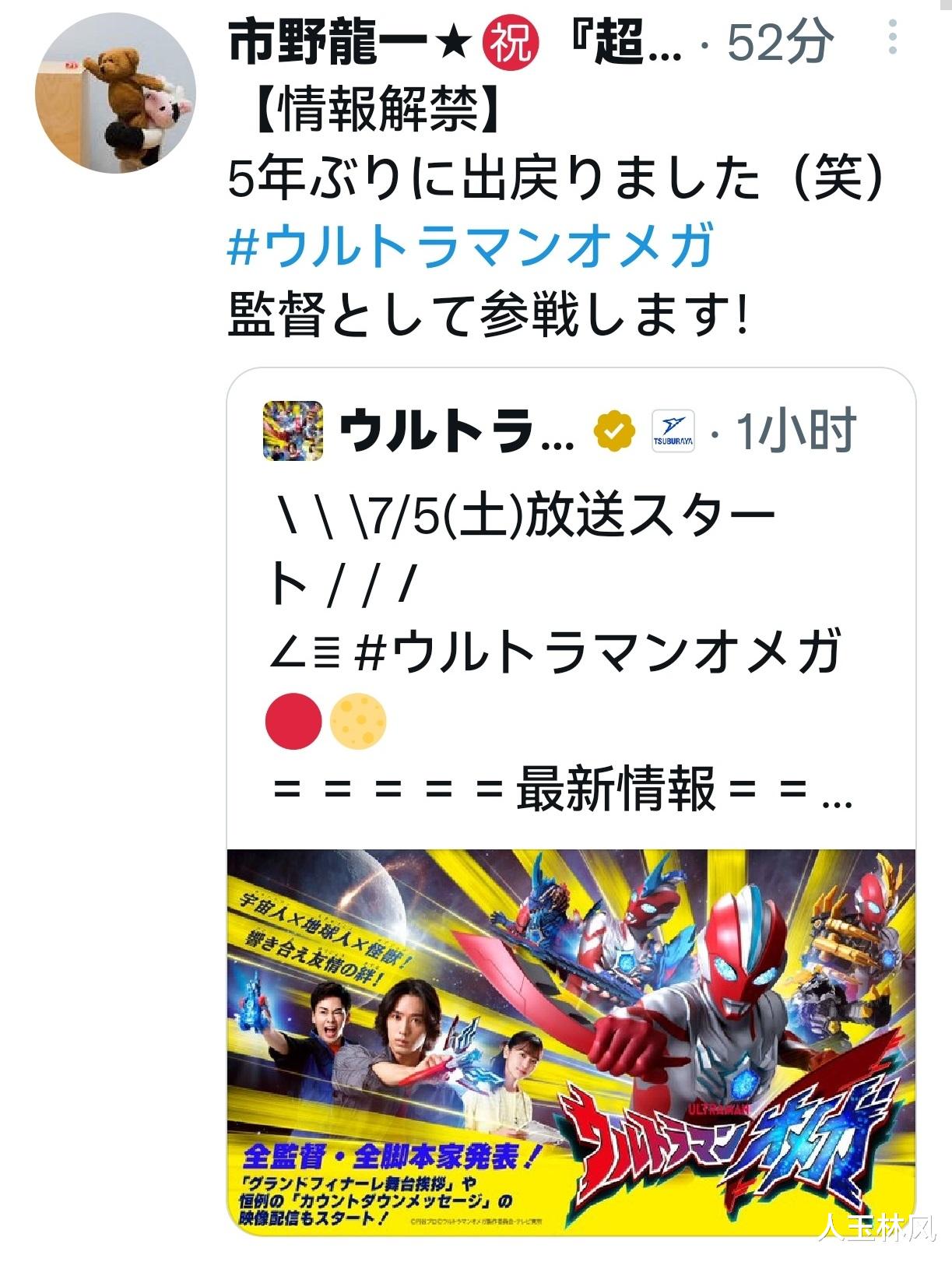 值得注意的是,市野龙一最近一次参与奥棚作品拍摄还是五年前的《泰迦奥特曼》时期,这次是时隔五年后的再次回归,本人还在社交媒体上宣布了这一点。