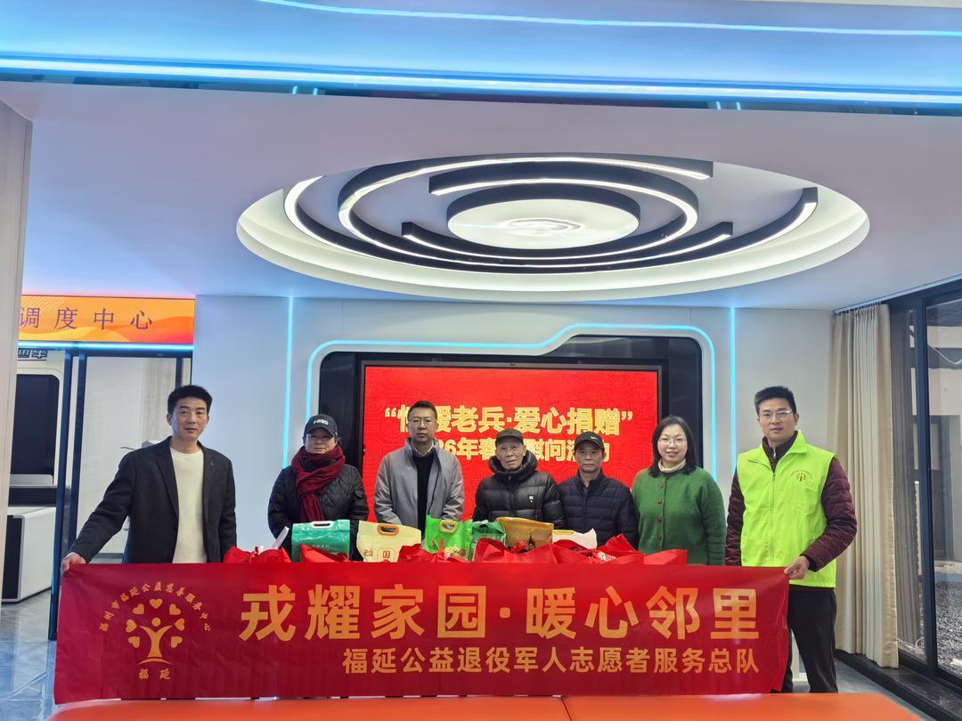近一个月来,福延公益志愿者们步履不停,深入福州各区县社区与困难家庭,开展“冬日送温暖、新春送关怀”系列行动。1月23日,福延公益退役军人志愿者服务总队协办鼓楼区华大街道“情暖老兵”节前慰问活动,为辖区退役老兵、新入伍战士家属送上大米、食用油、新春大礼包与年画,志愿者们主动上门为行动不便的老兵送物资、话家常,详细了解生活需求,把党和政府的关怀精准送到心坎上。1月30日,志愿者们走进福州市军队离休退休干部白龙休养所,开展“情暖老兵 戎耀家园”慰问活动,爱心企业捐赠的植物精油精准贴合老兵健康需求,退役军人书法家现场挥毫泼墨,为老兵书写春联福字,志愿者一对一协助老兵体验精油按摩、讲解使用方法,让尊崇与敬意在寒冬中愈发浓厚。92岁的离退休军人接过大红福字,喜笑颜开:“感谢福延公益的牵挂,这份关怀太周到了!”