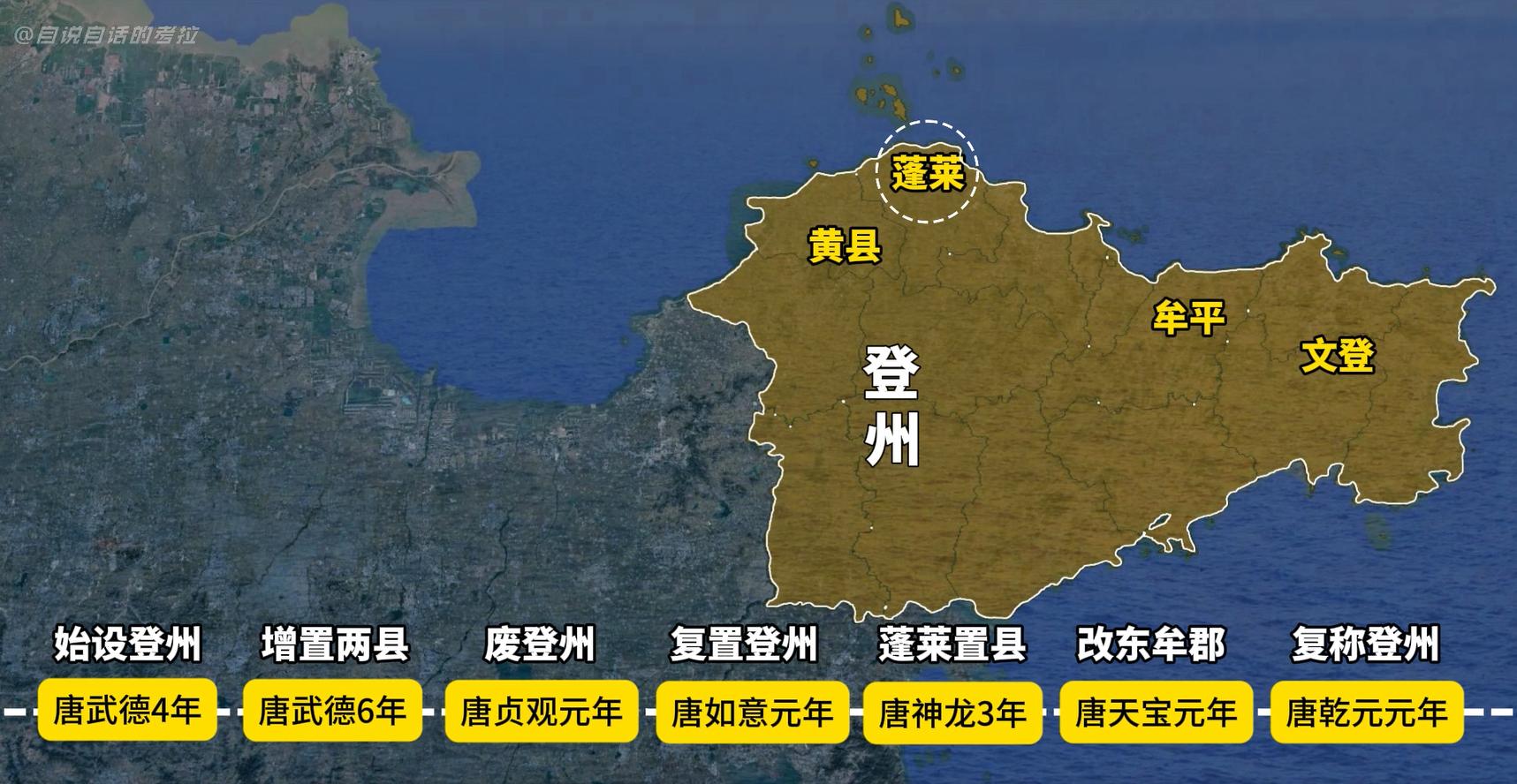 唐乾元元年(758年)复称登州,最终确定治所设在蓬莱,领四县的格局。