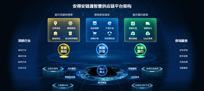 该平台集合了行业方案咨询能力、供应链决策大模型、末端渠道拓展能力以及仓干配物流履约能力,旨在为企业提高数智化决策效率,助力企业打造更优、更快、更稳定的供应链。