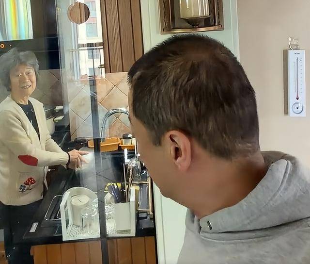 他亲昵地喊着“奶奶”寻找母亲,最终在厨房找到了正在洗碗的83岁老母亲,老人家面对镜头有些腼腆,手里的活计却没停下。