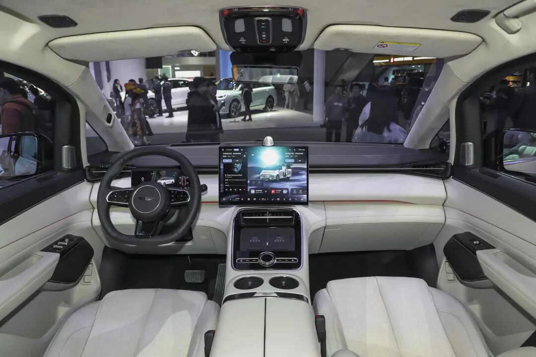 内饰方面,银河V900提供晨曦米、霞光橙两款内饰颜色,配备15.4英寸中控屏+10.25英寸仪表屏+19.8英寸AR-HUD,提供9.2寸显示屏的高清流媒体后视镜,采用Flyme Auto 2智能座舱系统,搭载骁龙8295P芯片。新车二排提供17.3英寸娱乐屏,扶手处提供5.98英寸功能控制屏,全车配备4个智能50W风冷无线快充。