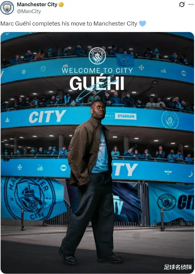 官方:曼城宣布从水晶宫签下了格伊,这名中卫签下了一份2031年到期的合同,英格兰人将身披15号球衣。