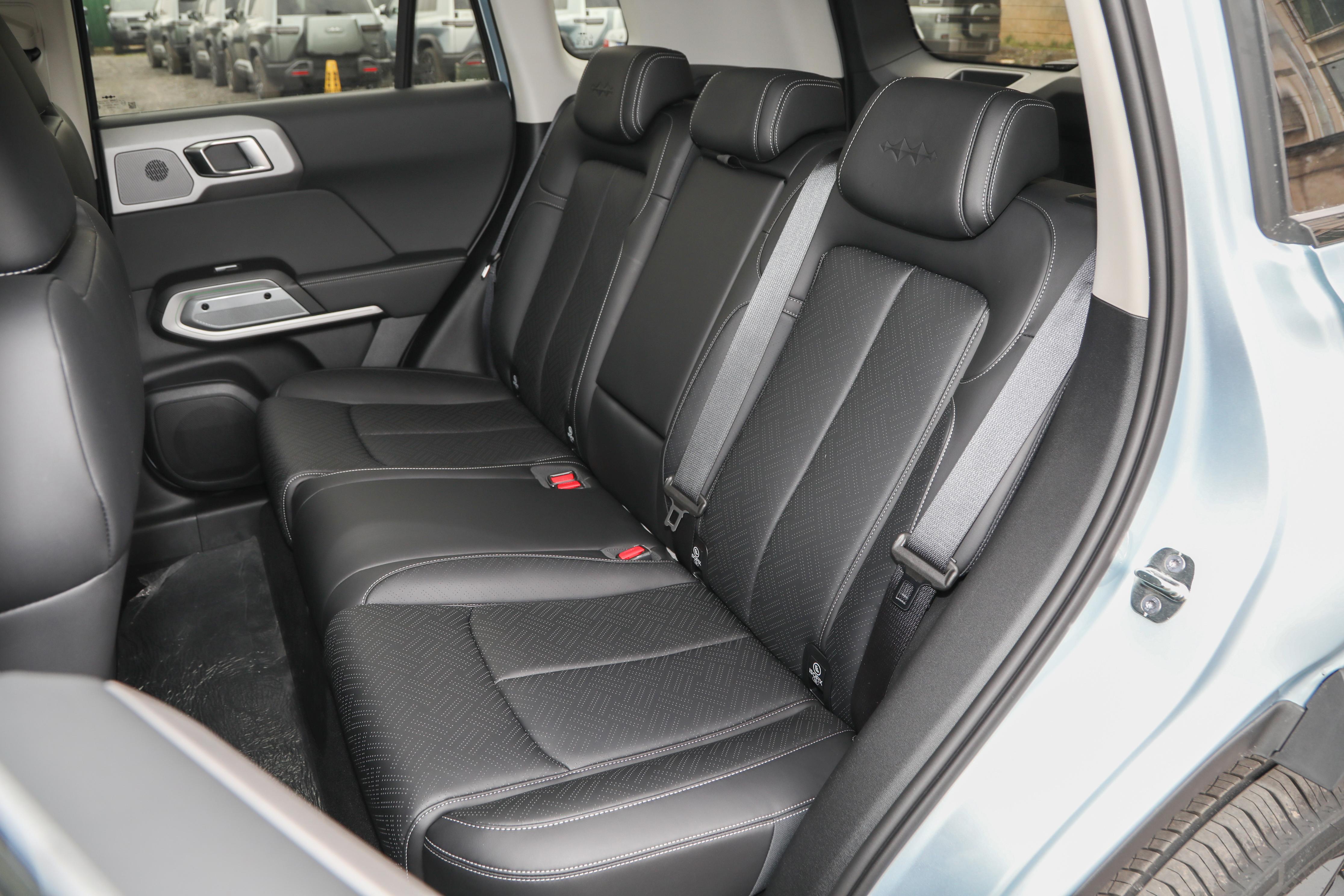 得益于 2745mm 的轴距和 1900mm 的宽体设计,后排空间同样充裕,我坐进去腿部能有两拳左右的活动空间,头部也能保留一拳的余量,完全不会觉得局促。后排中间地板的凸起不算高,临时坐三个人也不会太挤,靠背的倾斜角度适中,长途乘坐也不会觉得累。