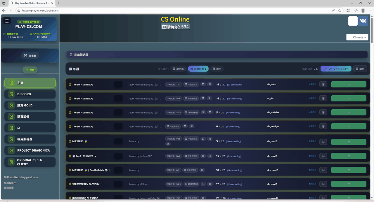 五、在线CS1.6这是一个在浏览器里就能和全国网友玩CS的网站。只需打开网站选择一个地图,然后点击右下角的链接,就可以直接开干!无需下载,不用登录,手感上和端游几乎一致。