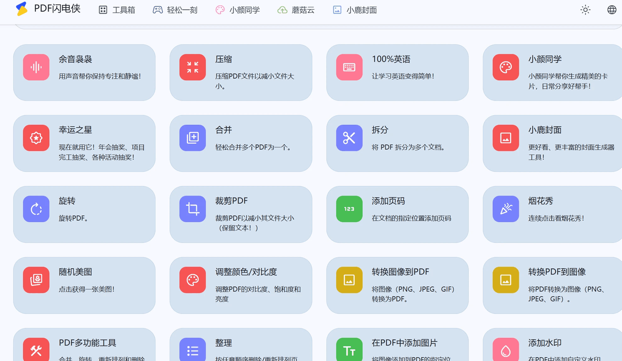 七、PDF闪电侠这是一个满足所有PDF需求的一站式工具网站。网站集成了50多种 PDF 功能,无论是压缩、合并、拆分等基础操作,还是图片/文档互转、签名、加密、查看与编辑功能,这里全都有。