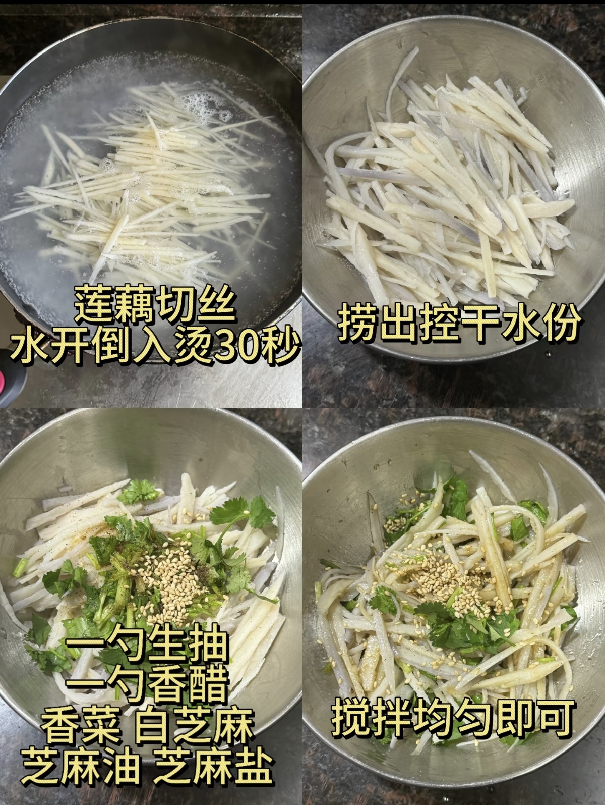 你有没有过这样的时刻?想吃点清爽解腻的小菜,又忍不住担心热量负担,总在“解馋”和“掉秤”之间反复纠结。其实,美食与好身材从不是单选题,只要选对食材,吃得干净,身体自然会回馈你轻盈的状态。最近迷上的这道芝麻香菜拌藕丝,便是我近期餐桌上的“解腻神器”。它不像大鱼大肉那般厚重,却以独特的口感和风味,让人一口接一口停不下来。藕丝清脆爽口,带着天然的清甜,芝麻的醇厚香气与香菜的清新气息交织在一起,每一口都是层次分明的味觉享受,吃完整个人都感觉清爽了不少。