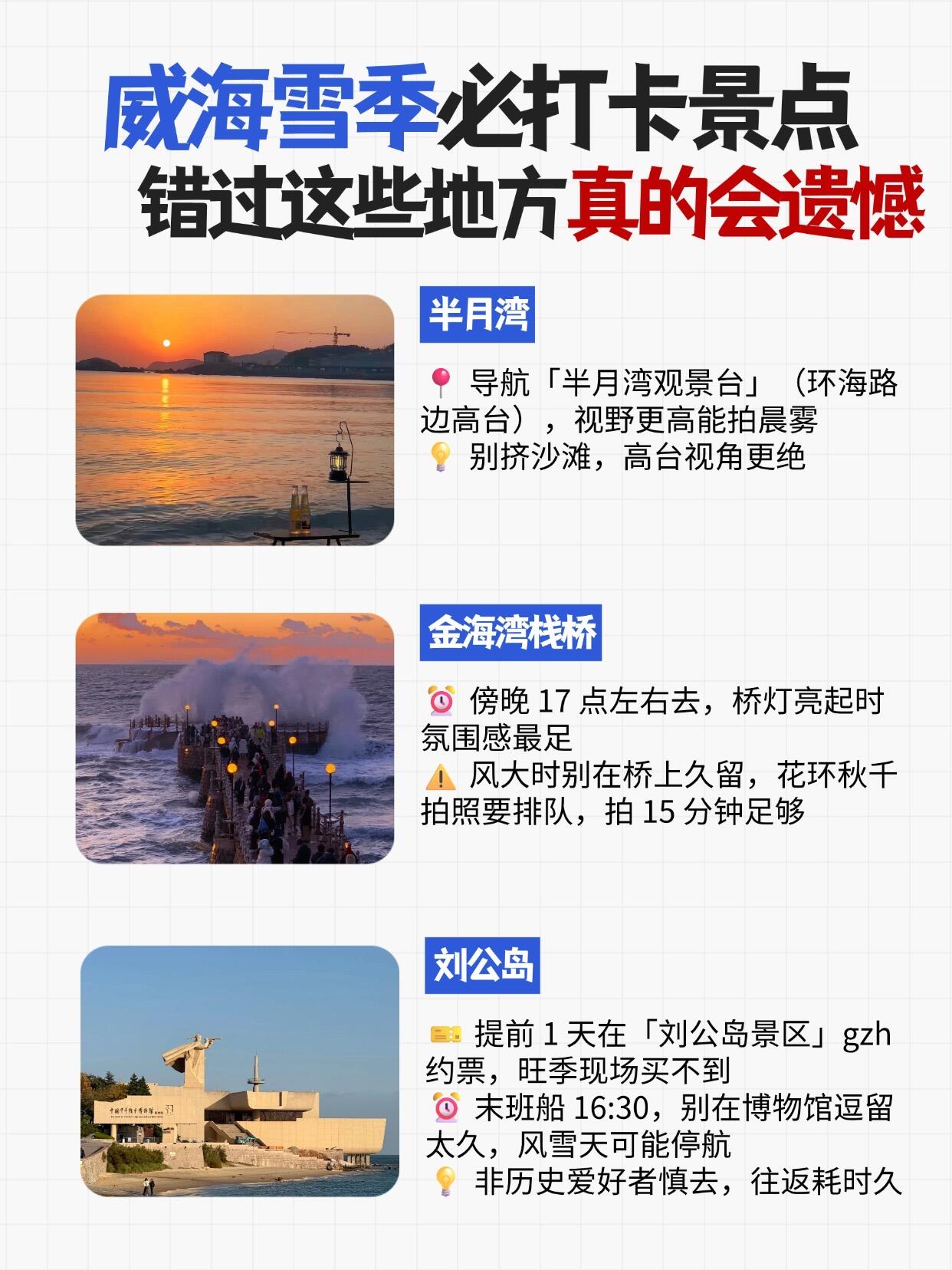 ✅ 半月湾去「半月湾观景台」(环海路边高台),视野更高能拍晨雾,别挤沙滩,高台视角更绝🌅