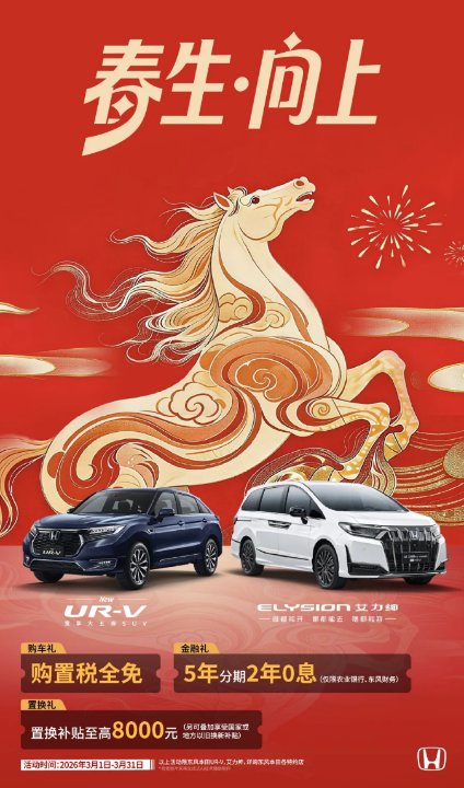 为了回馈广大消费者的厚爱,东风本田特别推出了春日购车福利活动。活动时间从2026年3月1日至3月31日,期间购买CR-V、英仕派可享2000元踏春基金及多项金融礼遇;购HR-V燃油版和思域燃油版,可享受5年分期2年0息的金融政策;而购UR-V和艾力绅,则可享受购置税全免及置换补贴等丰厚优惠。这些福利政策不仅降低了消费者的购车门槛,更让每一位选择东风本田的消费者都能感受到品牌的诚意与关怀。